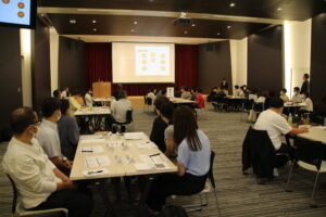 開会にあたり、宮崎医療ソーシャルワーカー協会の野間義史会長がマイクを握り「ACP、人生会議は本人の意思を尊重した医療、ケアを実現するために、私たちが果たすべき役割を問い直す重要なテーマです。本日はACPの基礎から実践まで幅広く学べる内容となっています。本日は支援相談員以外の職種の方にも参加いただいています。多職種の視点が交わることで、より豊かな学びと気づきが生まれることを期待しています。本日の研修が地域におけるACPの推進につながることを願っています」と挨拶しました。