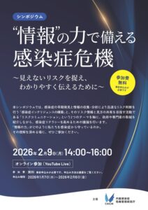 このシンポジウムでは、「感染症の早期発見と情報の収集・分析により迅速なリスク判断を行う『感染症インテリジェンスの構築』と、そのリスク情報と見方の共有を目指す活動である『リスクコミュニケーション』という2つのテーマを軸に、政府や専門家の取組を紹介しながら、感染症リテラシーを高めるための議論」を行う内容となっています。参加は無料です。