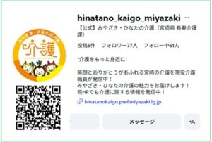「みやざき・ひなたの介護」のInstagramはこちらです。ぜひチェック、フォローをお願いします。