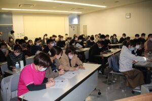 リハビリテーション研究部会が11月22日に開いた研修会、第1部の講師を務めた介護老人保健施設サンフローラみやざきの言語聴覚士、茶木友美さんは、講義のメインテーマである「嚥下障害に対する訓練」について話し始めました。参加者も興味深く聞き入りました。