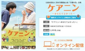 公益社団法人日本介護福祉士会は「介護の日」企画として映画「ケアニン~あなたでよかった~」の無料オンライン上映会を実施します。