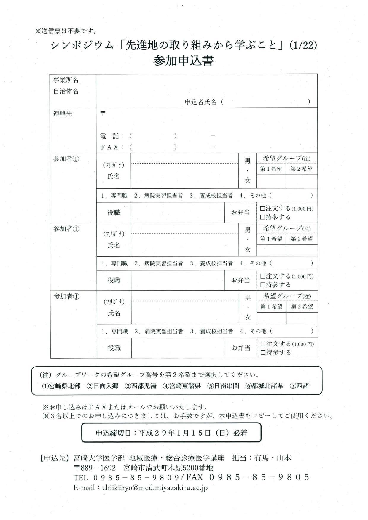 受講を希望される方はこちらをご覧いただき、「参加申込書」に必要事項をご記入の上、ファックスまたはメールで「宮崎大学医学部 地域医療・総合診療医学講座(担当:有馬 様、山本 様)」までお申し込み下さい。申込締切は平成29年1月15日(日)です。